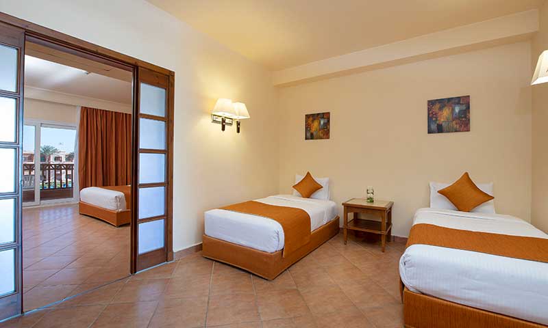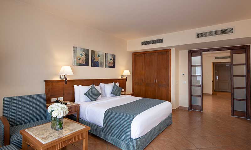 The resort is conveniently located approximately 7 km from Sharm El Sheikh International Airport, with an estimated transfer time of around 10–15 minutes.