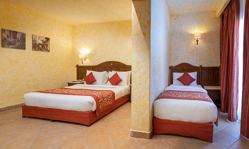 Part of an enchanting beachfront trio, our resort offers 282 comfortable rooms designed with the charm of Italian villages. With our dedicated part of a 750 meters of sandy & pebbles beach overlooking the stunning Red Sea, we provide a tranquil escape for adults seeking peace.